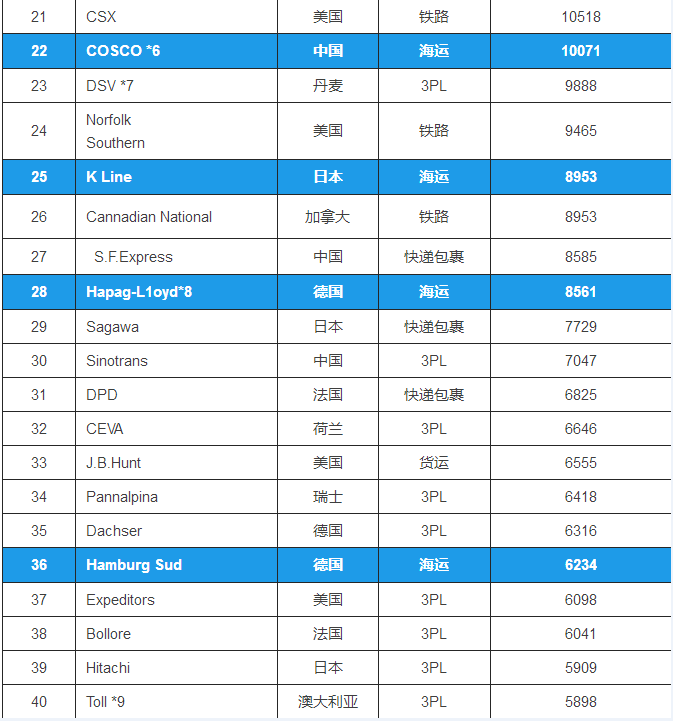 全球知名物流咨询公司 SJ Consulting Group公布了最新全球运输服务提供商50强榜单!