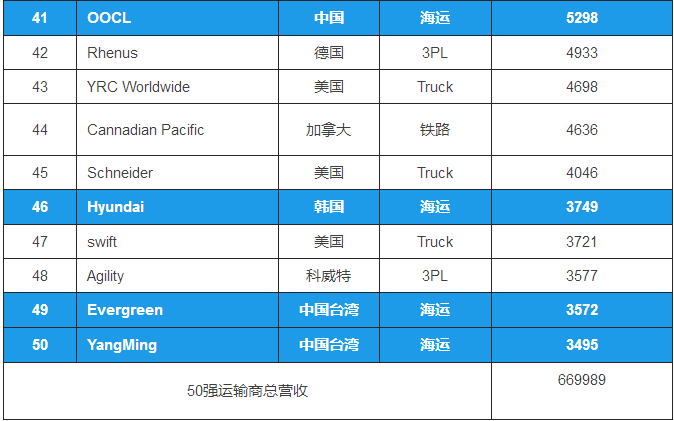 榜单!2017年度全球运输服务提供商50强排行榜!