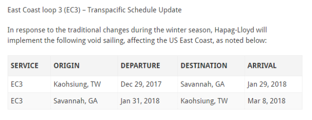 ▲Hapag-Lloyd 网站公告的部分停航航线
