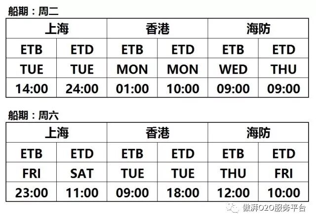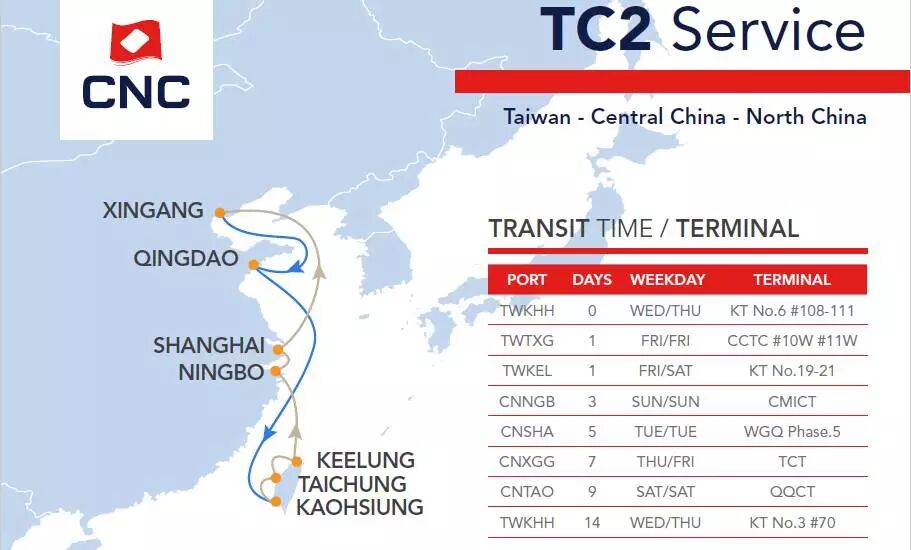 到港时间:KAOHSIUNG 6天,TAICHUNG 7天,KEELUNG 8天