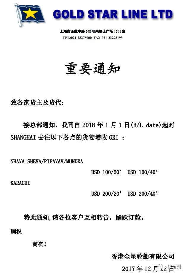 - 上一篇:注意!多家船公司面临航线面临调整,配货时请留意! 2017/12/28